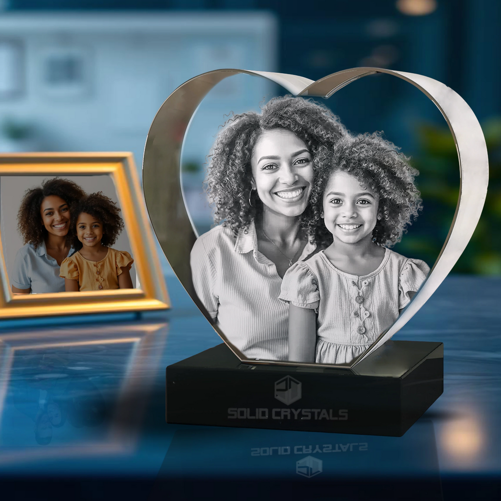 Our exquisite 3d heart shaped photo crystal is the perfect encasement for any treasured photo memory.